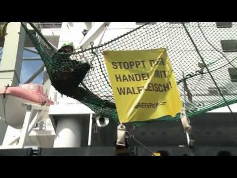 Greenpeace en Hamburg, Alemania contra el trato con Carne de ballenas